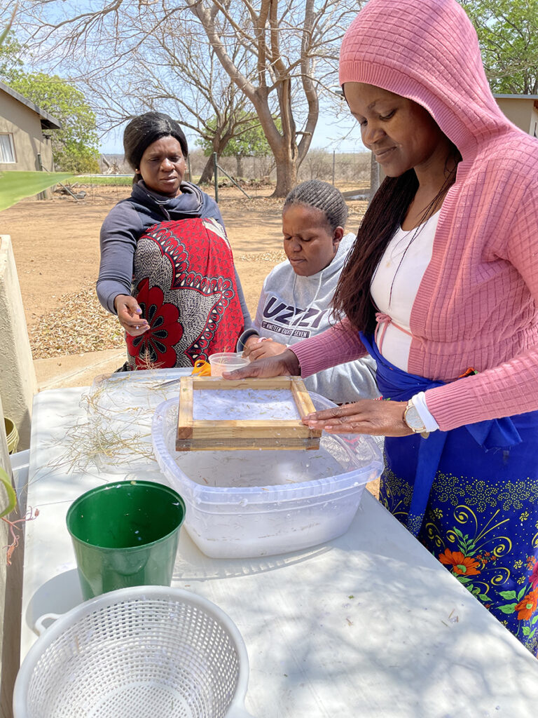 One new project is our elephant dung paper-making which the JabuLadies have embraced along with Miriam!
