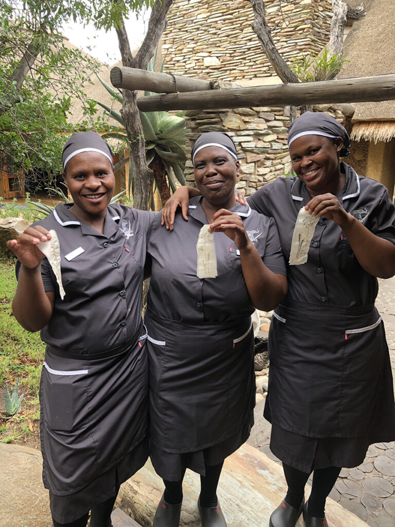 It began with leader, Miriam Mahladisa, a long-time employee working with us, and the Jabulani lodge housekeeping team, and now our JabuLadies Team is growing to include more ladies from the direct community around us here in Hoedspruit, such as Patience Mabunda, Thulisile Malatule and Linkie Malatole seen above.