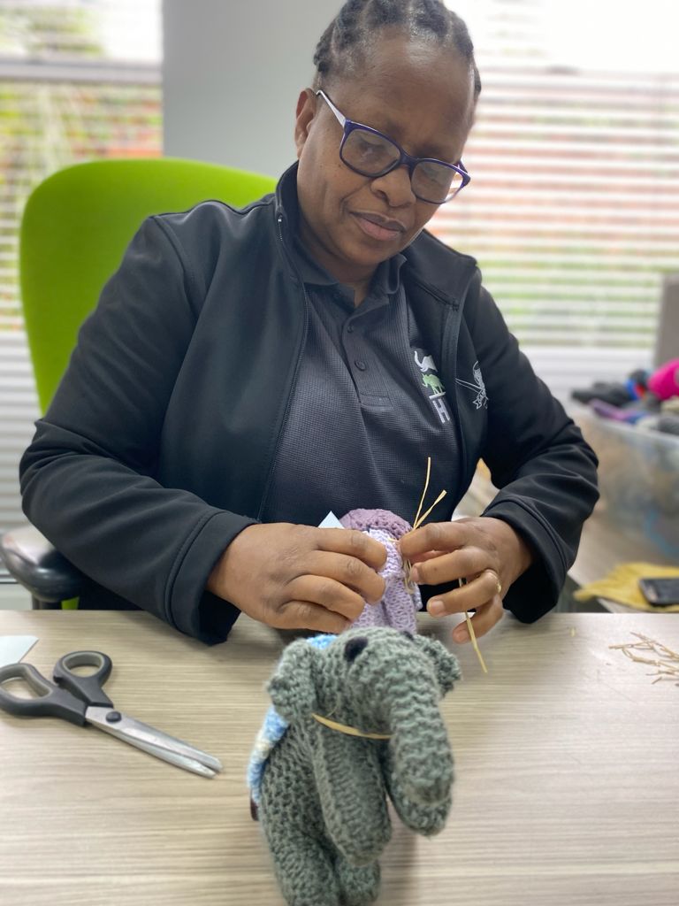 Adine Roode wished to create something beneficial and empowering. She wanted to spread awareness about the welfare of the wildlife in the areas surrounding the Jabulani lodge and the Greater Kruger and empower local women at the same time. We gained a lot of guidance and support from local South Africans such as passionate embroiderer Kelly Fletcher, and Dana Biddle from Colourspun, a yarn supplier, as well as Emetia Pretorius who assisted with the initial development of the different products and concepts. Her vision was to create uniquely South African items using local fabric. Today, JabuLadies has taken on new shapes and forms to widen our sphere of influence, with a variety of items being made.