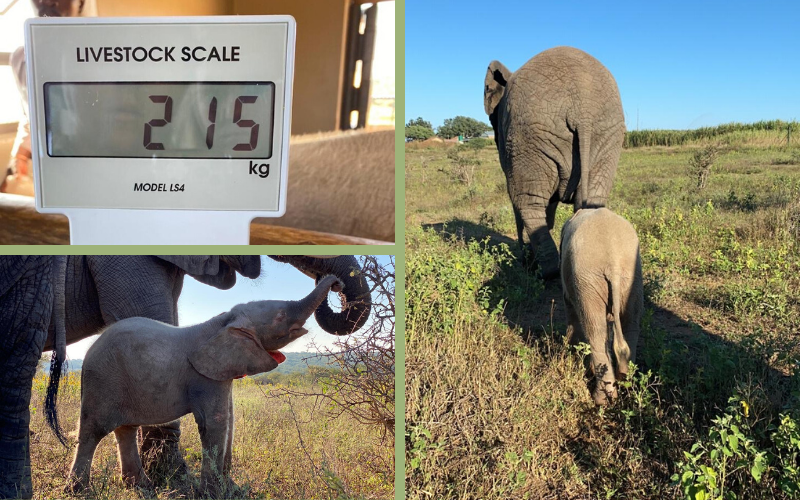 Little Khanyisa is growing in every way! In knowledge, experience, support, family and, we’re happy to confirm once again… SIZE! This week her scale reading is bigger and better at 215 kgs ~ 91 kgs up from the 124 kgs that she weighed when she was rescued in January 2020.