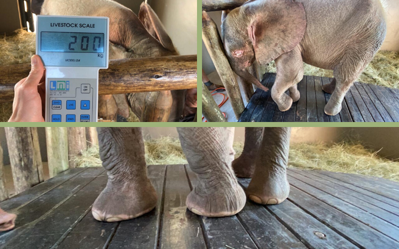 Little girl weighs in at 200 big ones this week! That’s up 76 kg from 124 kg, when she was rescued in January 2020.