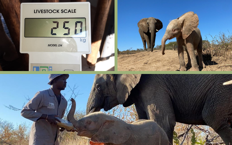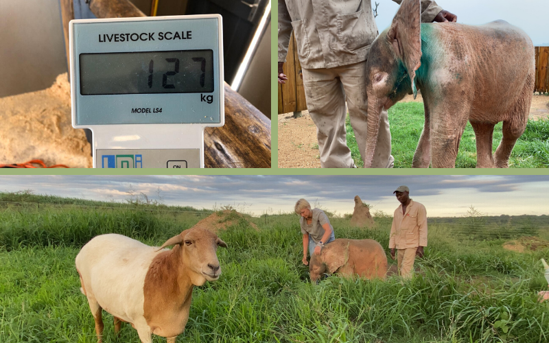 We are so happy and grateful to say that due to swift action, pure love and luck and assistance from our amazing HERD elephant care team, little Khanyisa overcame her setback with diarrhea and managed to continue to pick up any weight lost – and more!