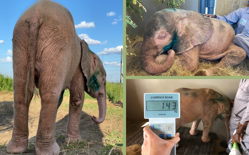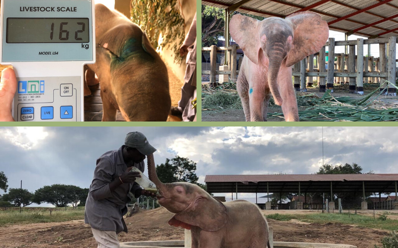 Today the sweet, almost 10-month-old albino calf, Khanyisa weighs in at a big quarter of a tonne! 250 kgs! This special little elephant is definitely growing steadily now, with a 126 kg gain since she was rescued in January this year, at a mere 124 kgs. We’re so happy to see the scale numbers continue to rise!